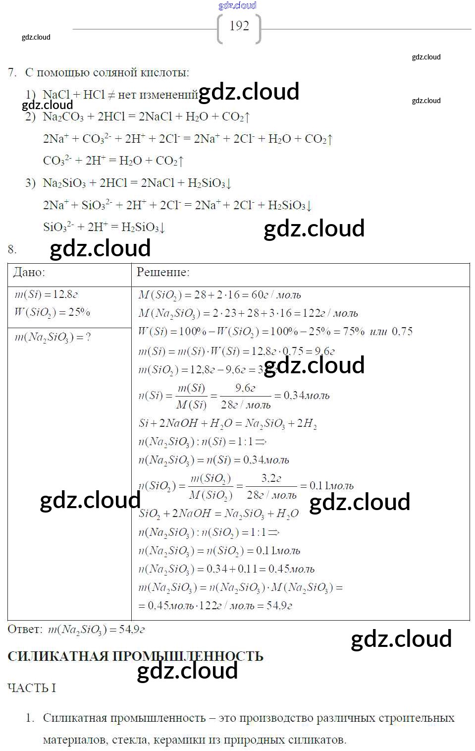Ответ на задание 192 Рабочая тетрадь Химия за 9 (девятый) класс Габриелян, Сладков Вертикаль 2014 ФГОС онлайн и без номера телефона.