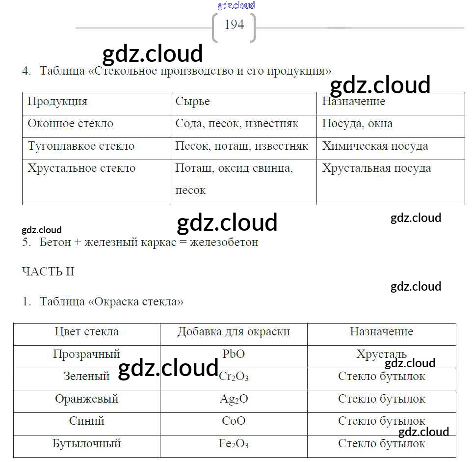 Ответ на задание 194 Рабочая тетрадь Химия за 9 (девятый) класс Габриелян, Сладков Вертикаль 2014 ФГОС онлайн и без номера телефона.