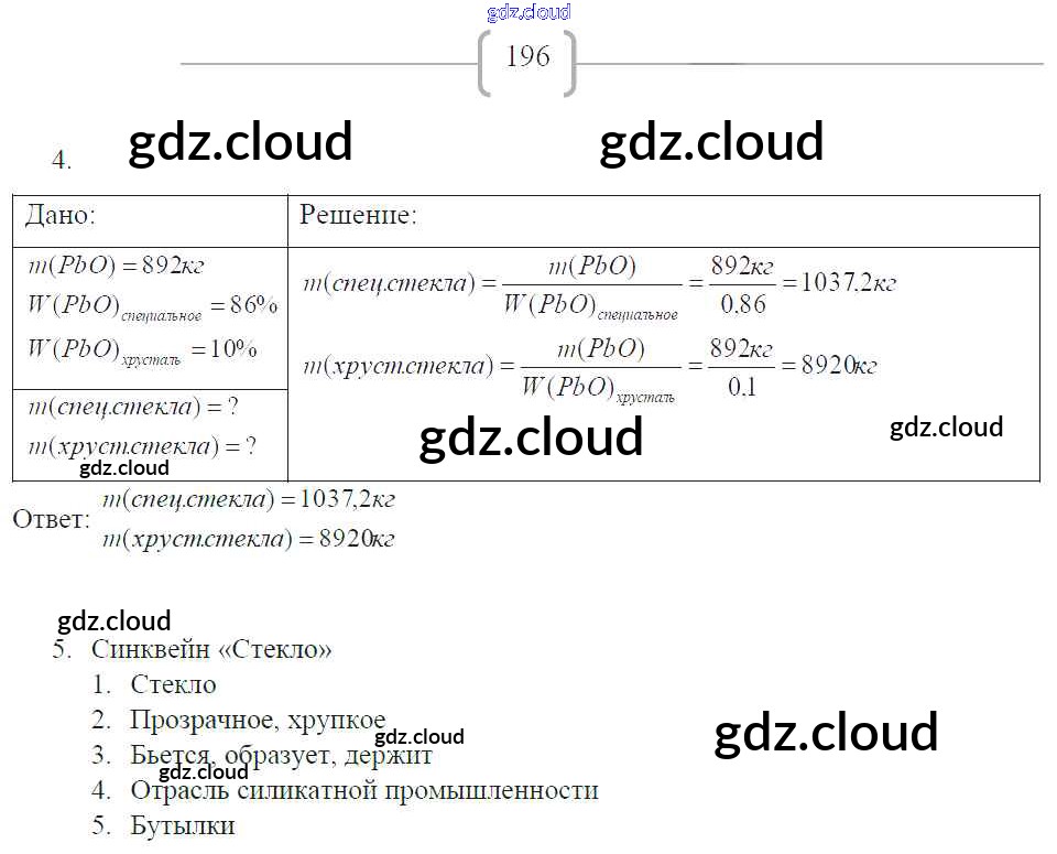 Ответ на задание 196 Рабочая тетрадь Химия за 9 (девятый) класс Габриелян, Сладков Вертикаль 2014 ФГОС онлайн и без номера телефона.
