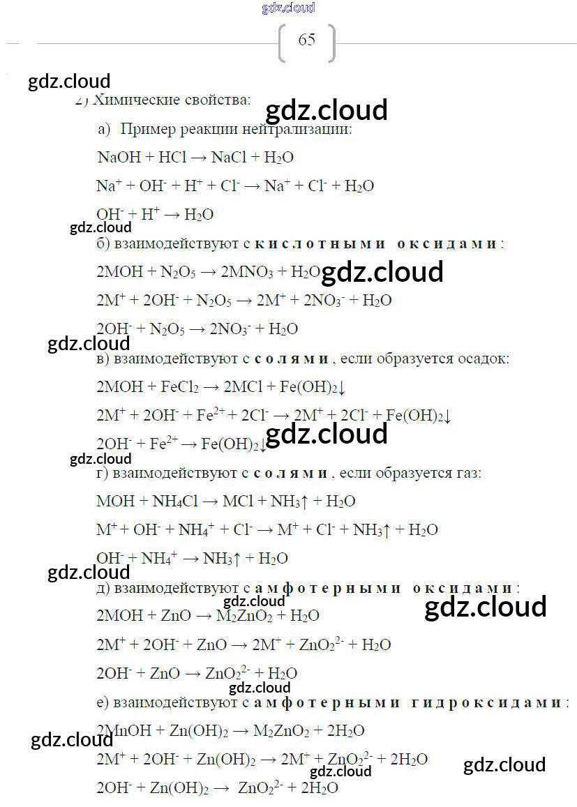 Ответ на задание 65 Рабочая тетрадь Химия за 9 (девятый) класс Габриелян, Сладков Вертикаль 2014 ФГОС онлайн и без номера телефона.