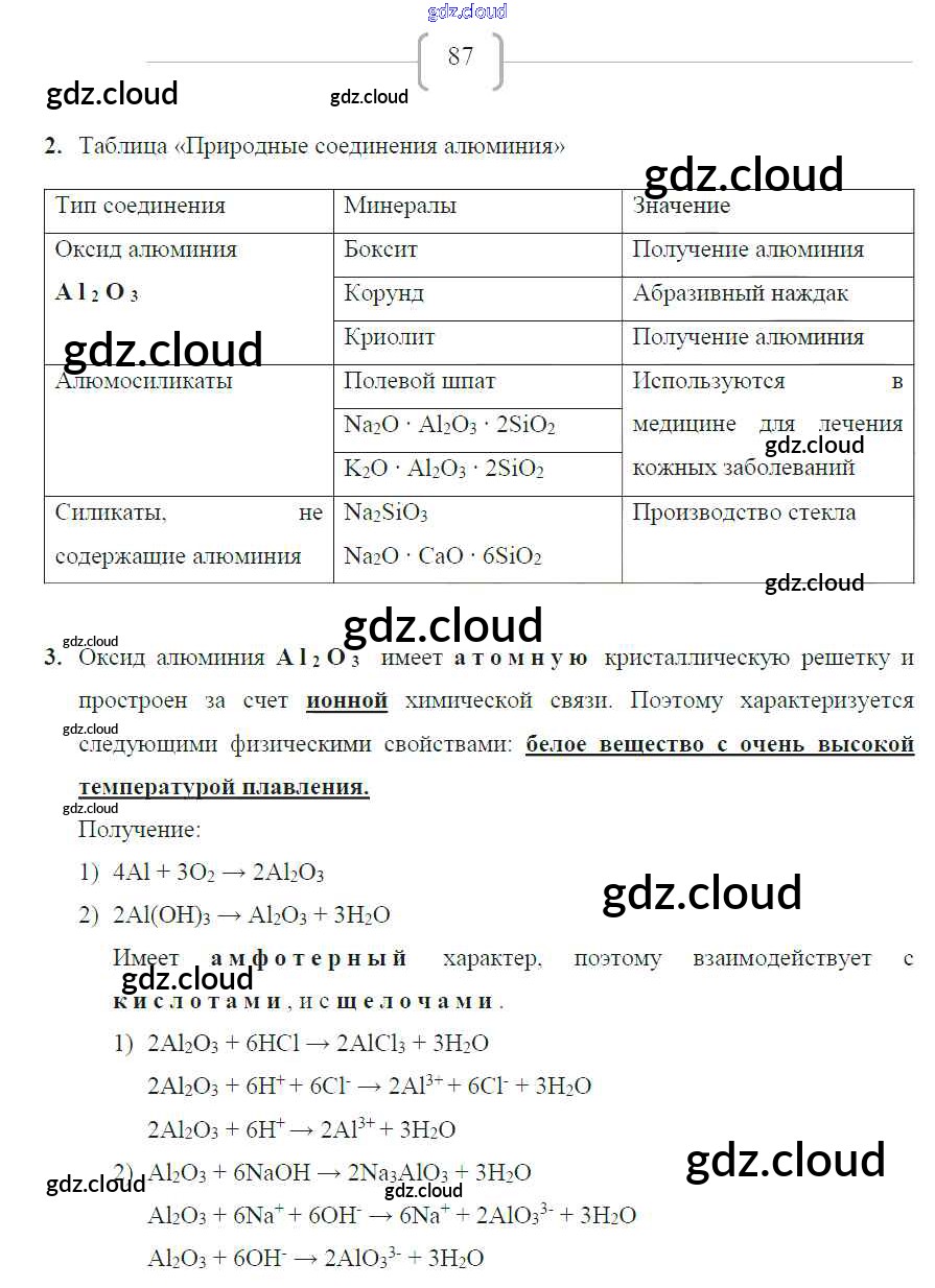 Ответ на задание 87 Рабочая тетрадь Химия за 9 (девятый) класс Габриелян, Сладков Вертикаль 2014 ФГОС онлайн и без номера телефона.