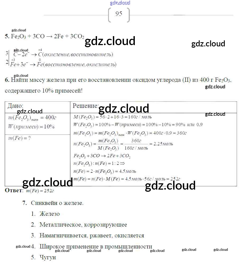 Ответ на задание 95 Рабочая тетрадь Химия за 9 (девятый) класс Габриелян, Сладков Вертикаль 2014 ФГОС онлайн и без номера телефона.