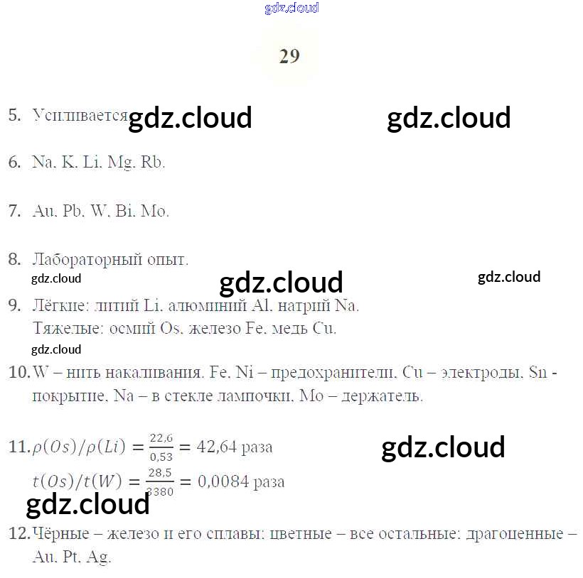 Ответы к уроку 10. Физические свойства металлов по Химии 9 класс Рабочая тетрадь Микитюк УМК Дрофа