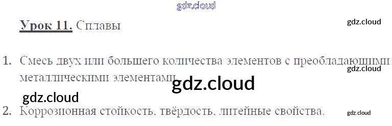 Ответы к уроку 11. Сплавы по Химии 9 класс Рабочая тетрадь Микитюк УМК Дрофа