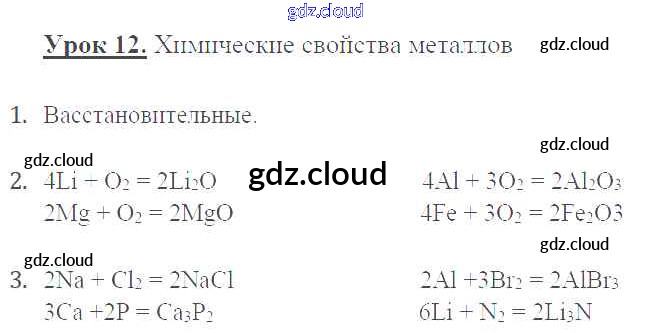 Ответы к уроку 12. Химические свойства металлов по Химии 9 класс Рабочая тетрадь Микитюк УМК Дрофа
