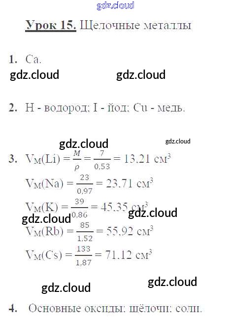 Ответы к уроку 15. Щелочные металлы по Химии 9 класс Рабочая тетрадь Микитюк УМК Дрофа