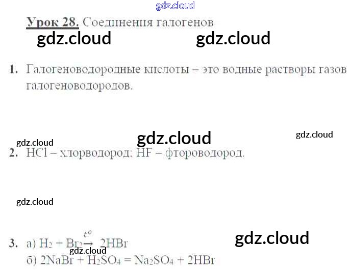 Ответы к уроку 28. Соединения галогенов по Химии 9 класс Рабочая тетрадь Микитюк УМК Дрофа