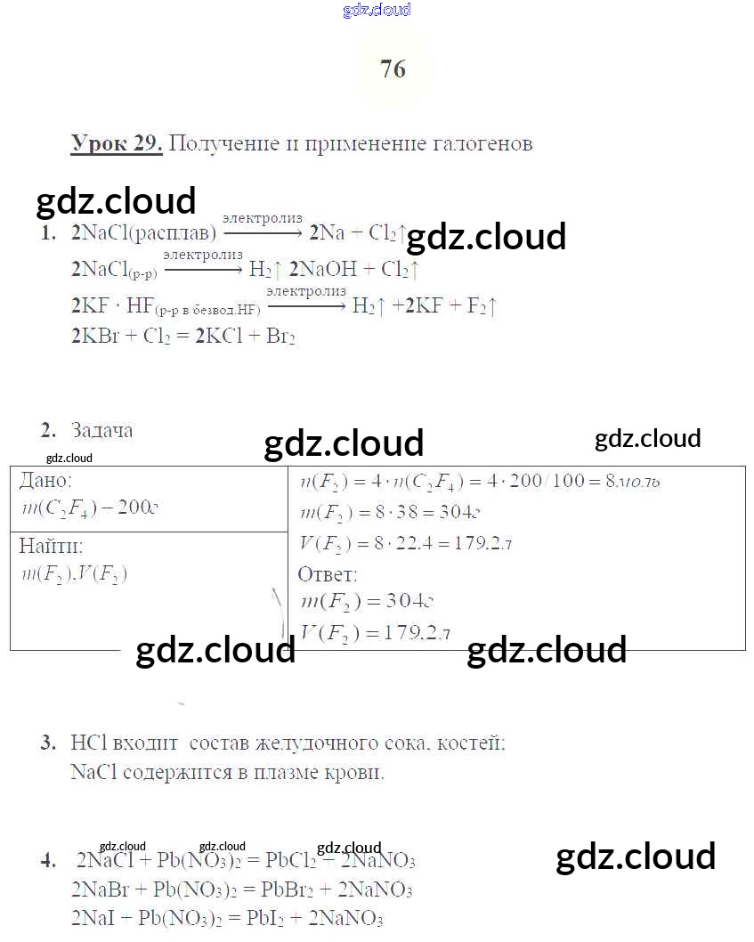 Ответы к уроку 29. Получение и применение галогенов по Химии 9 класс Рабочая тетрадь Микитюк УМК Дрофа
