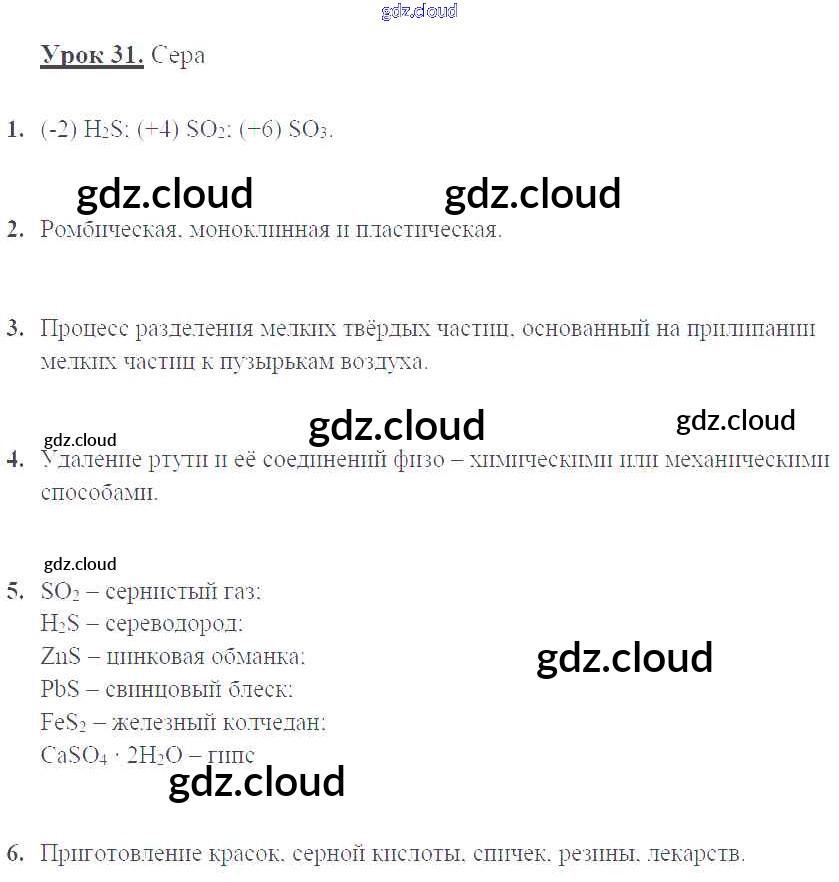 Ответы к уроку 31. Сера по Химии 9 класс Рабочая тетрадь Микитюк УМК Дрофа