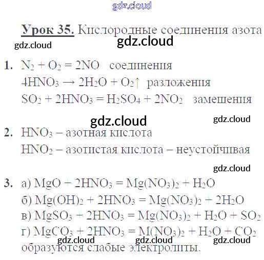 Ответы к уроку 35. Кислородные соединения азота по Химии 9 класс Рабочая тетрадь Микитюк УМК Дрофа