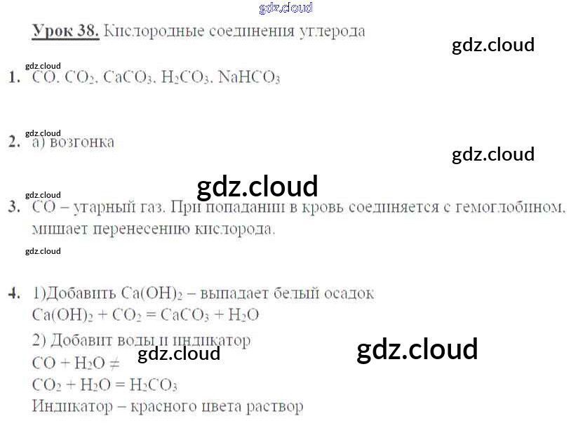 Ответы к уроку 38. Кислородные соединения углерода по Химии 9 класс Рабочая тетрадь Микитюк УМК Дрофа
