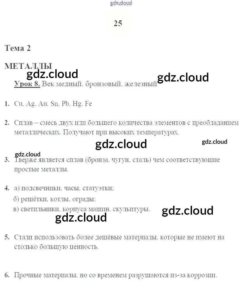 Ответы к уроку 8. Век медный, бронзовый, железный по Химии 9 класс Рабочая тетрадь Микитюк УМК Дрофа