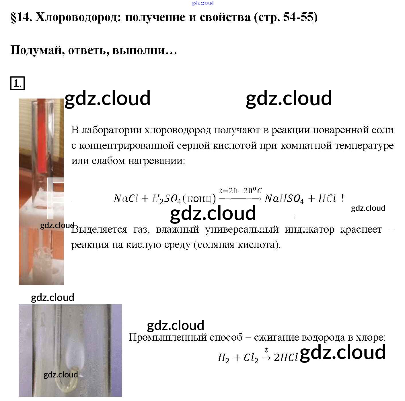 § 14. Хлороводород - получение и свойства Ответы к новому изданию по Химии 9 класс Учебник Рудзитис УМК Просвещение