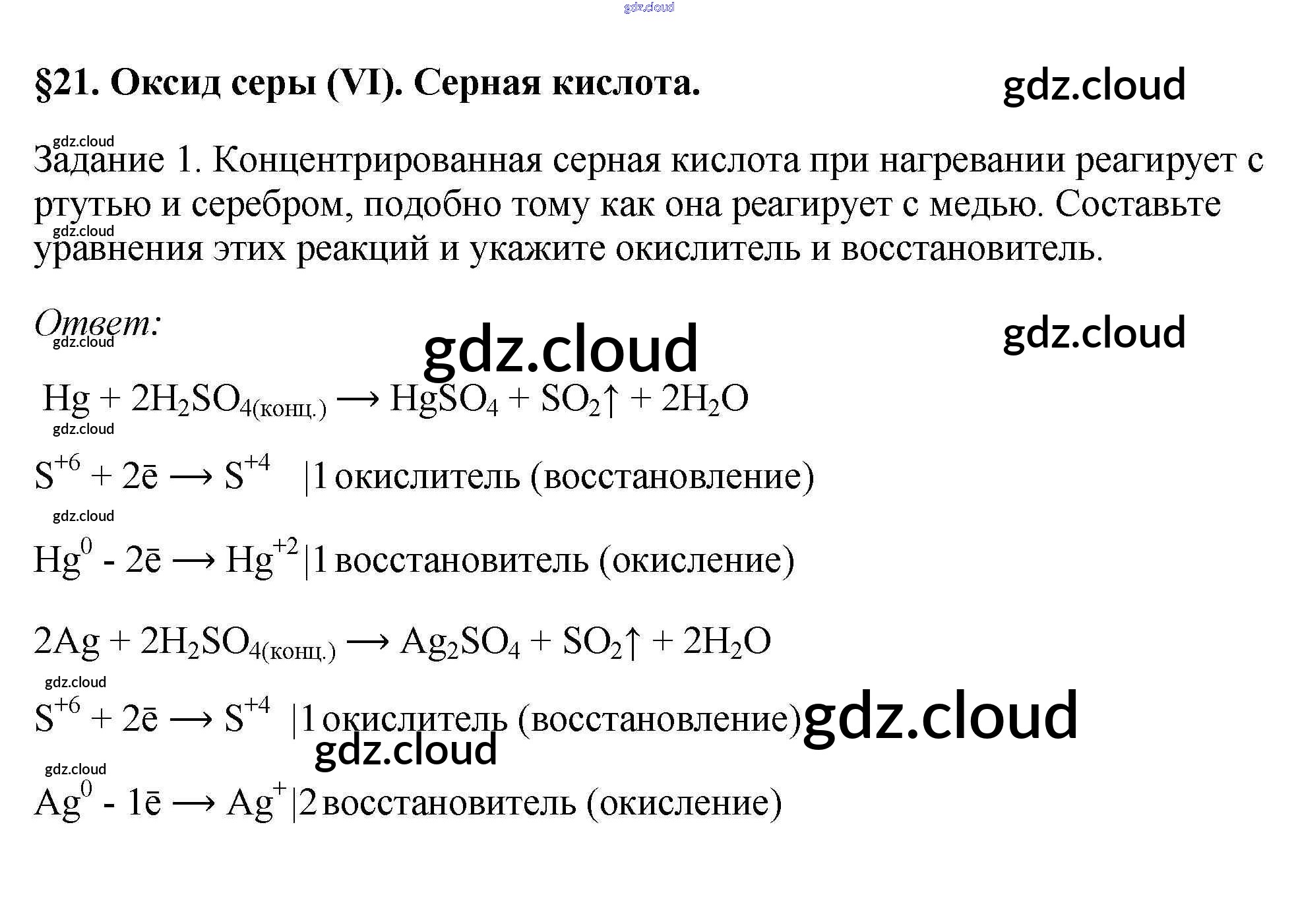 § 21. Оксид серы (VI). Серная кислота Ответы к новому изданию по Химии 9 класс Учебник Рудзитис УМК Просвещение