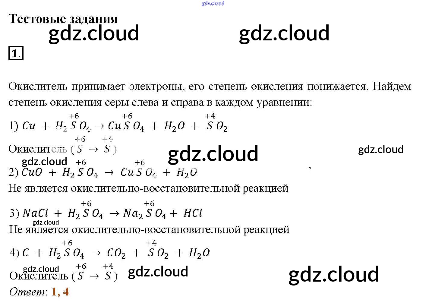 Ответ на задание тестовое задание Учебник Химия за 9 (девятый) класс Рудзитис, Фельдман УМК 2016