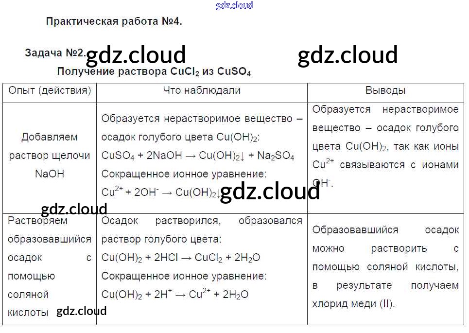 § 22. Практическая работа №4 Ответы к новому изданию по Химии 9 класс Учебник Рудзитис УМК Просвещение