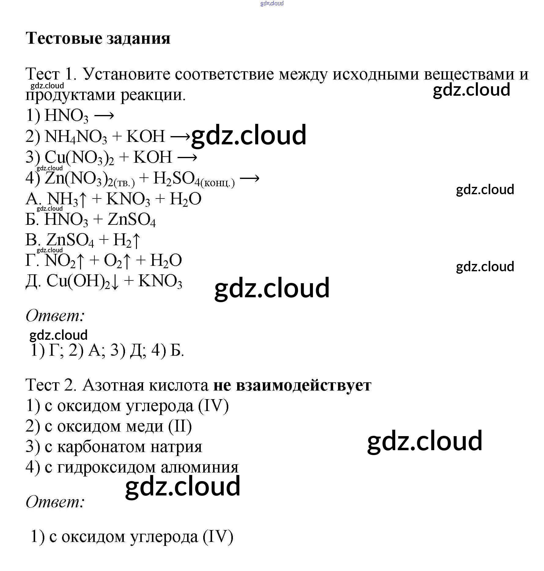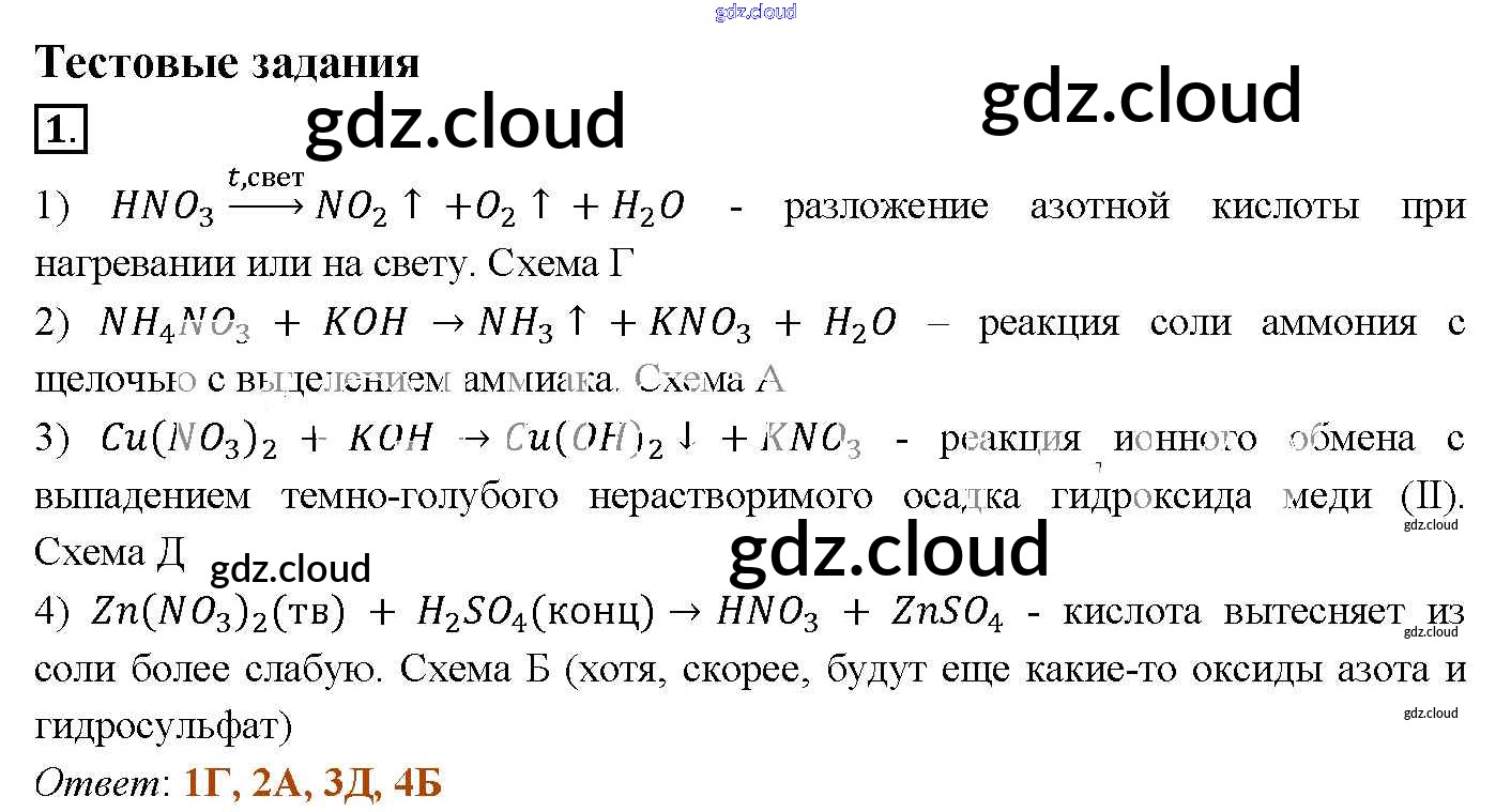 Ответ на задание тестовое задание Учебник Химия за 9 (девятый) класс Рудзитис, Фельдман УМК 2016