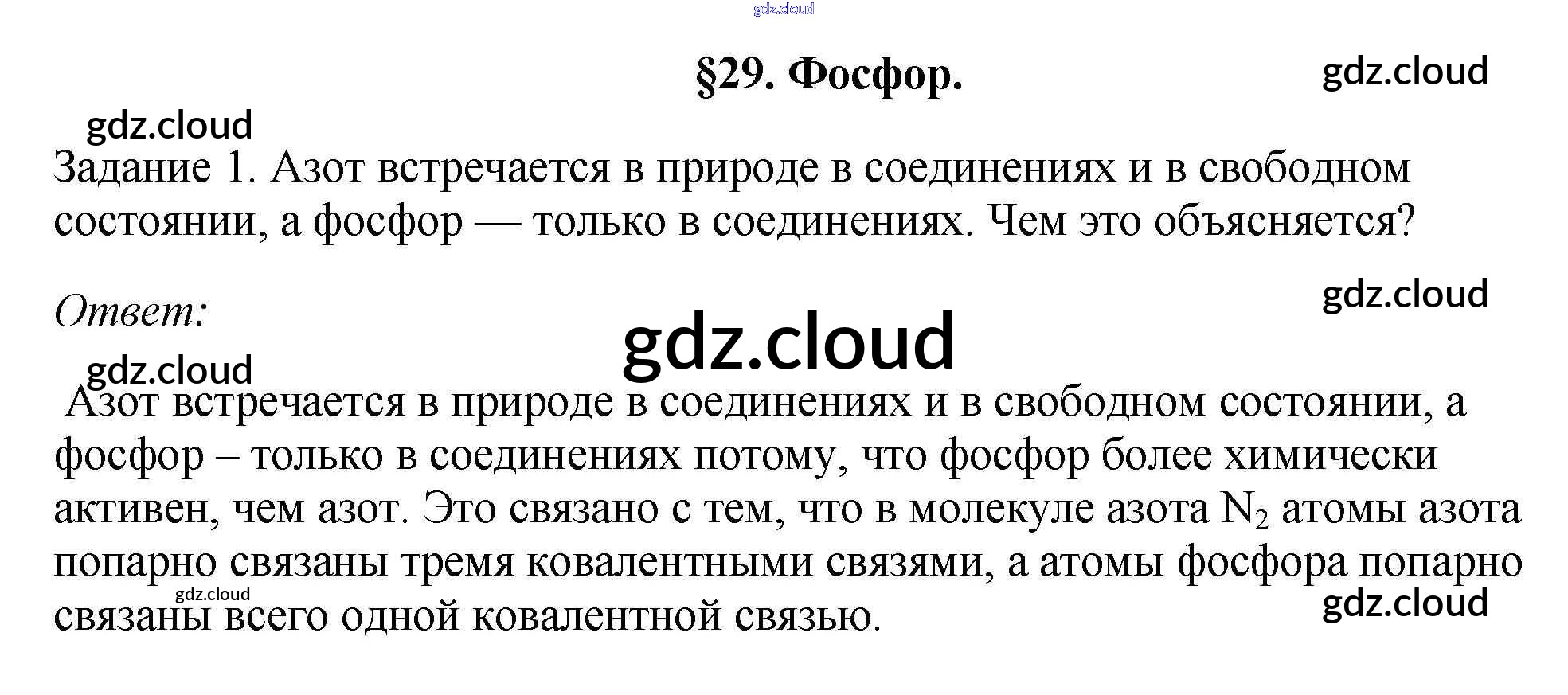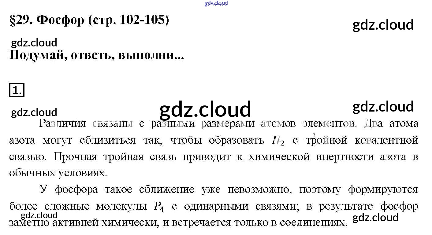 § 29. Фосфор Ответы к новому изданию по Химии 9 класс Учебник Рудзитис УМК Просвещение