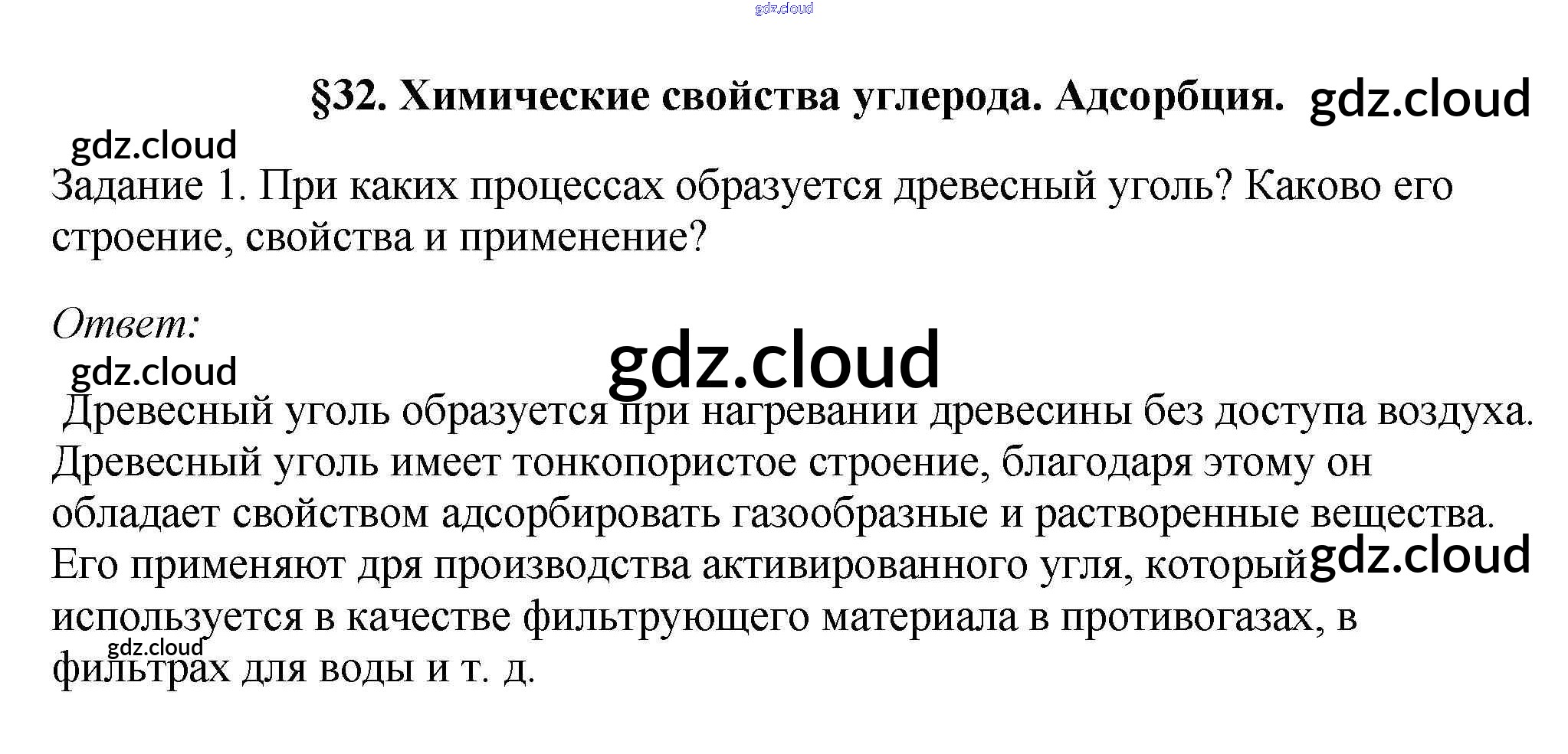 § 32. Химические свойства углерода. Адсорбция Ответы к новому изданию по Химии 9 класс Учебник Рудзитис УМК Просвещение