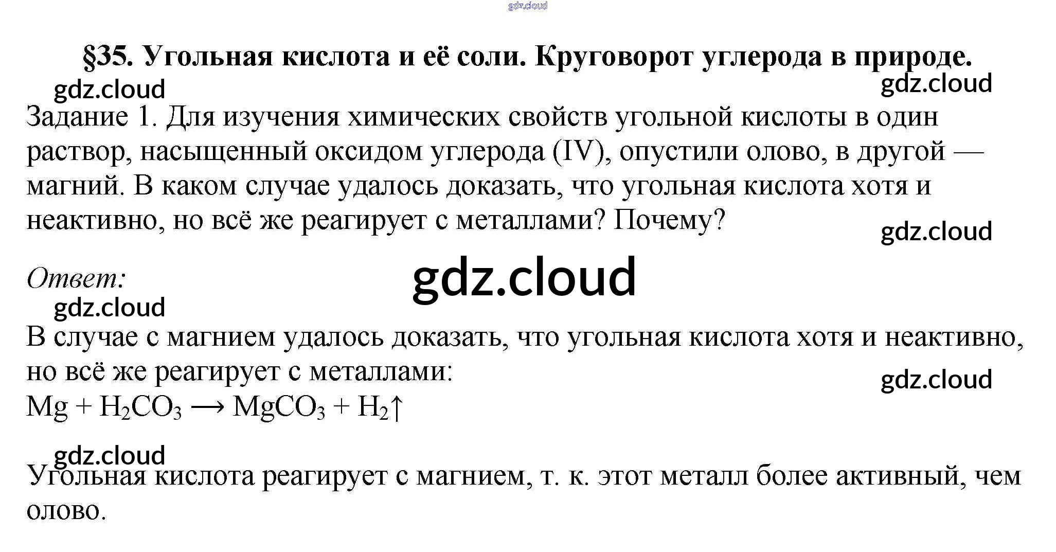 § 35. Угольная кислота и ее соли Ответы к новому изданию по Химии 9 класс Учебник Рудзитис УМК Просвещение