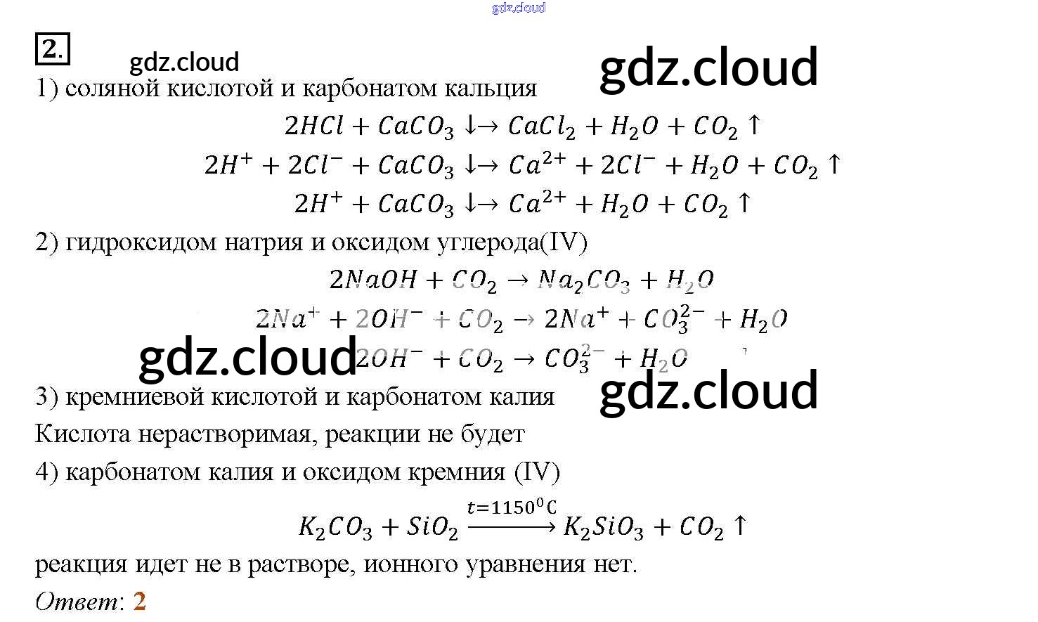 Ответ на задание тестовое задание Учебник Химия за 9 (девятый) класс Рудзитис, Фельдман УМК 2016