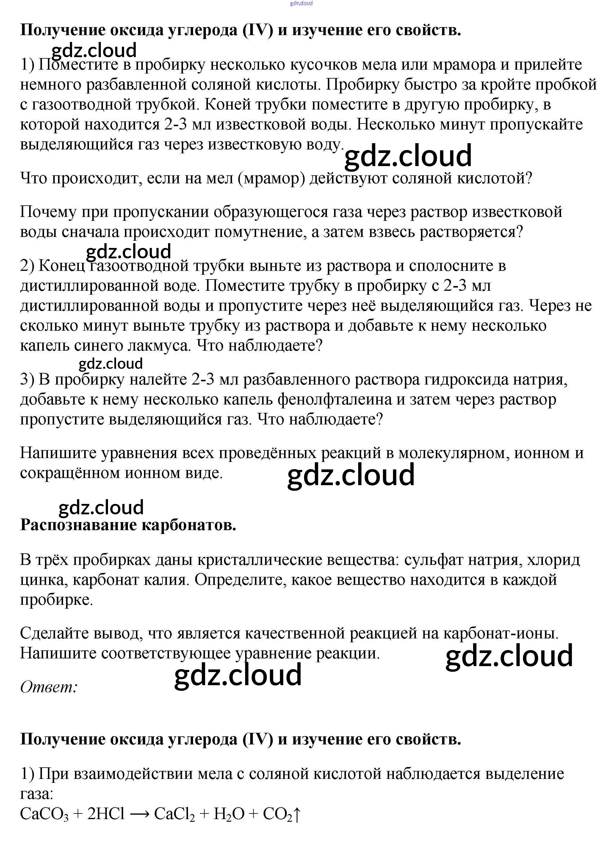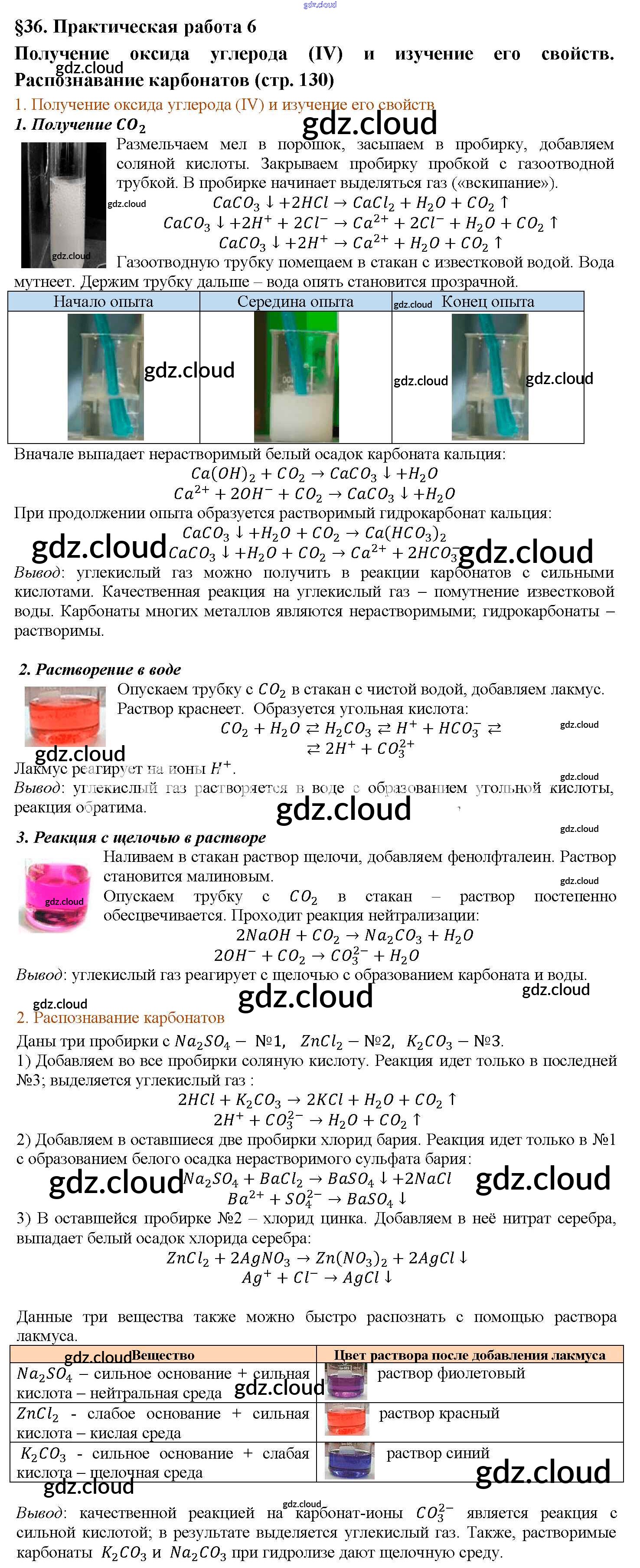 § 36. Практическая работа №6 Ответы к новому изданию по Химии 9 класс Учебник Рудзитис УМК Просвещение