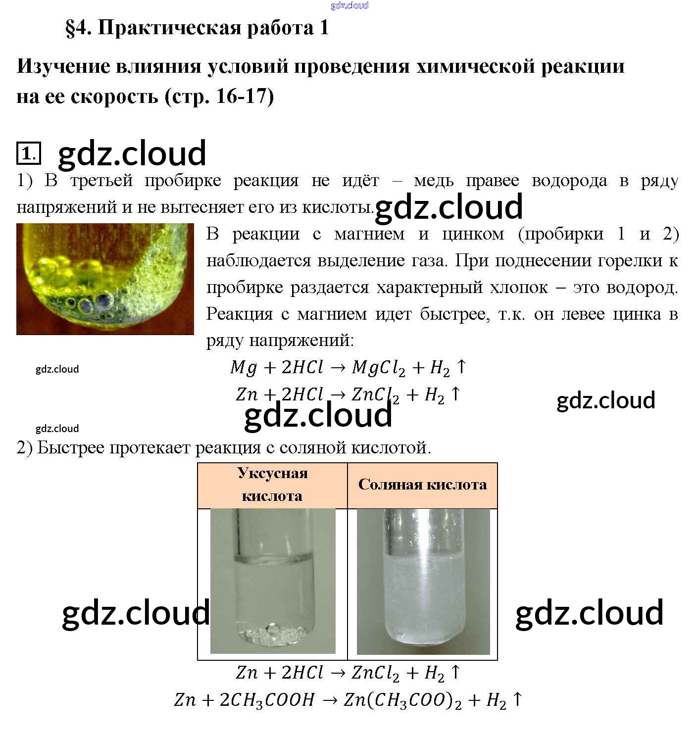 § 4. Практическая работа №1 Ответы к новому изданию по Химии 9 класс Учебник Рудзитис УМК Просвещение