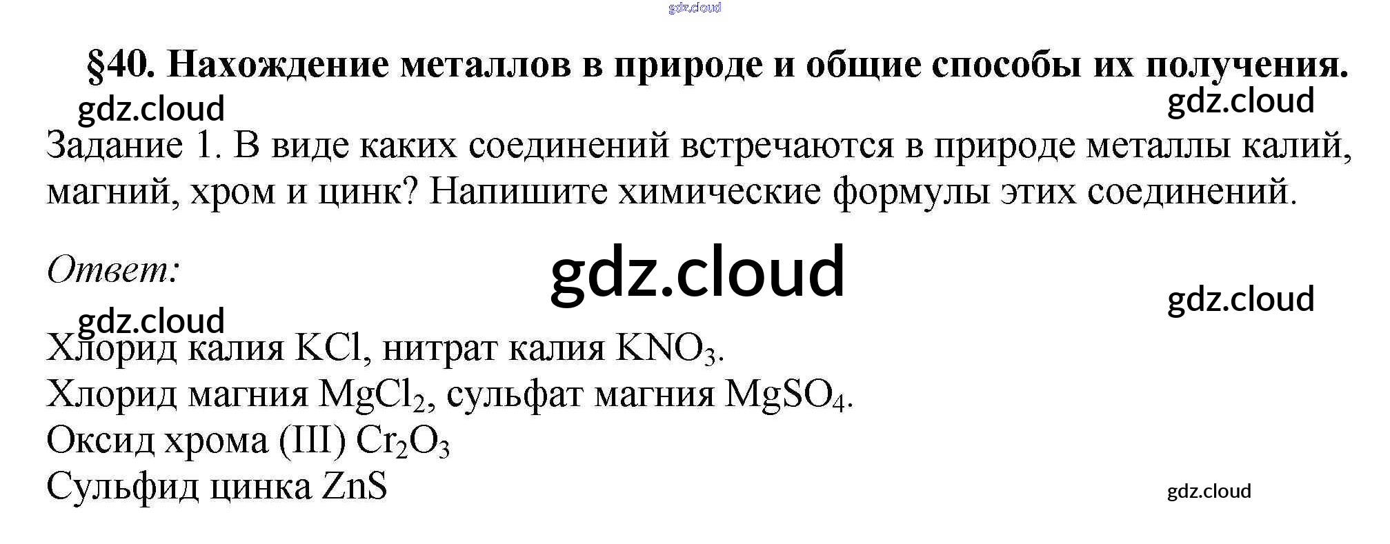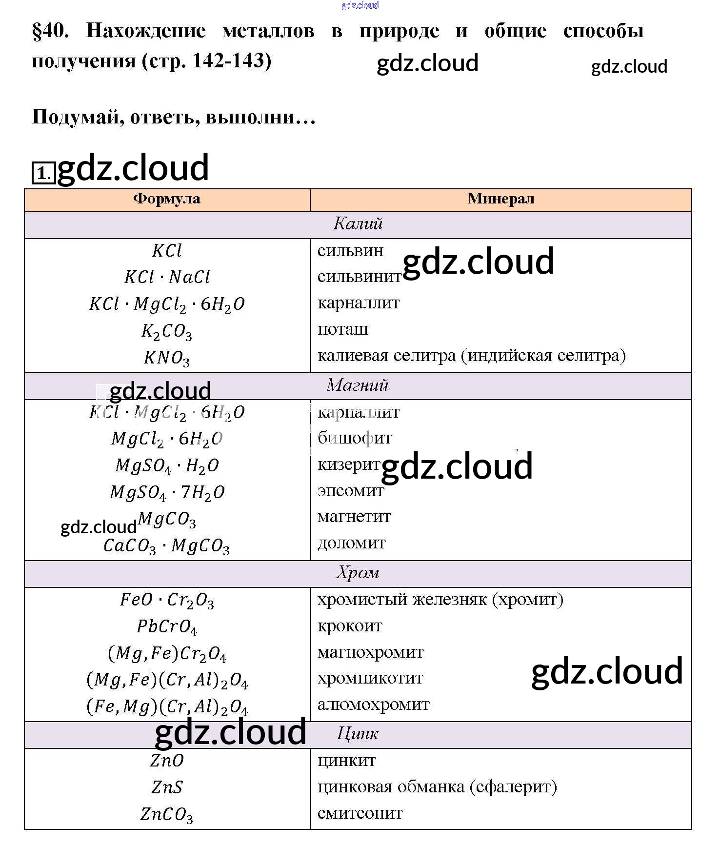 § 40. Нахождение металлов в природе и общие способы их получения Ответы к новому изданию по Химии 9 класс Учебник Рудзитис УМК Просвещение