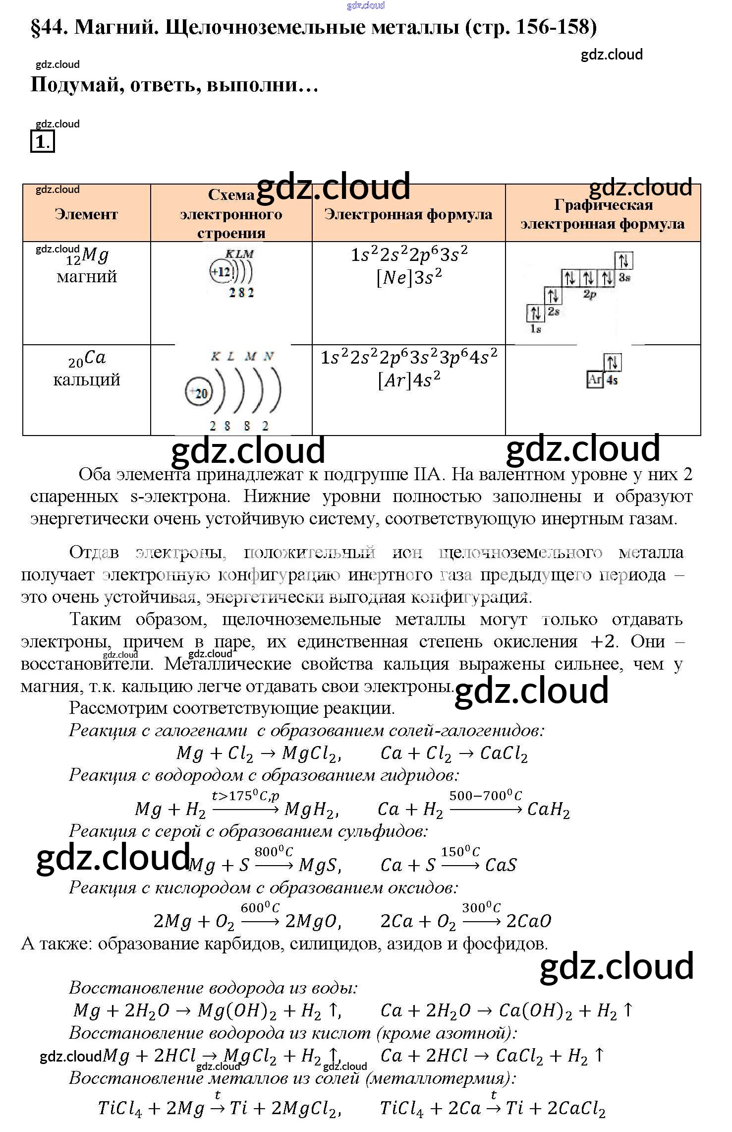 § 44. Магний. Щелочноземельные металлы Ответы к новому изданию по Химии 9 класс Учебник Рудзитис УМК Просвещение
