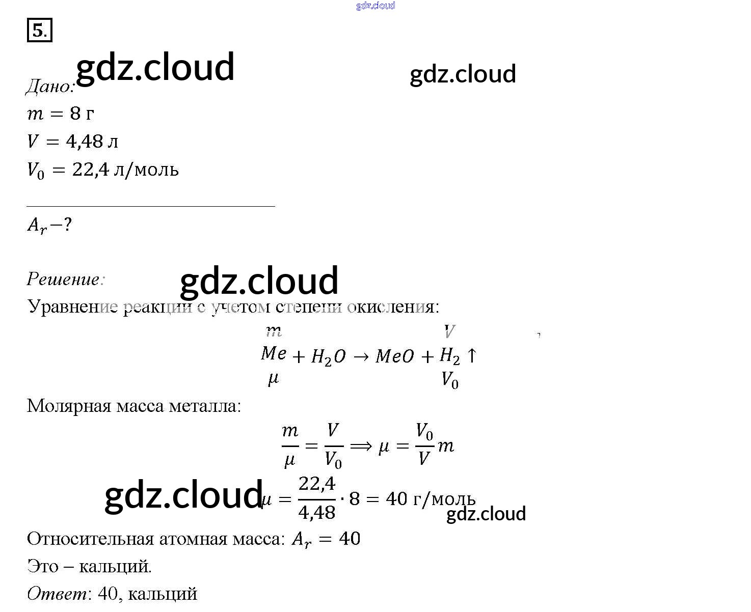 Ответ на задание 5 Учебник Химия за 9 (девятый) класс Рудзитис, Фельдман УМК 2016