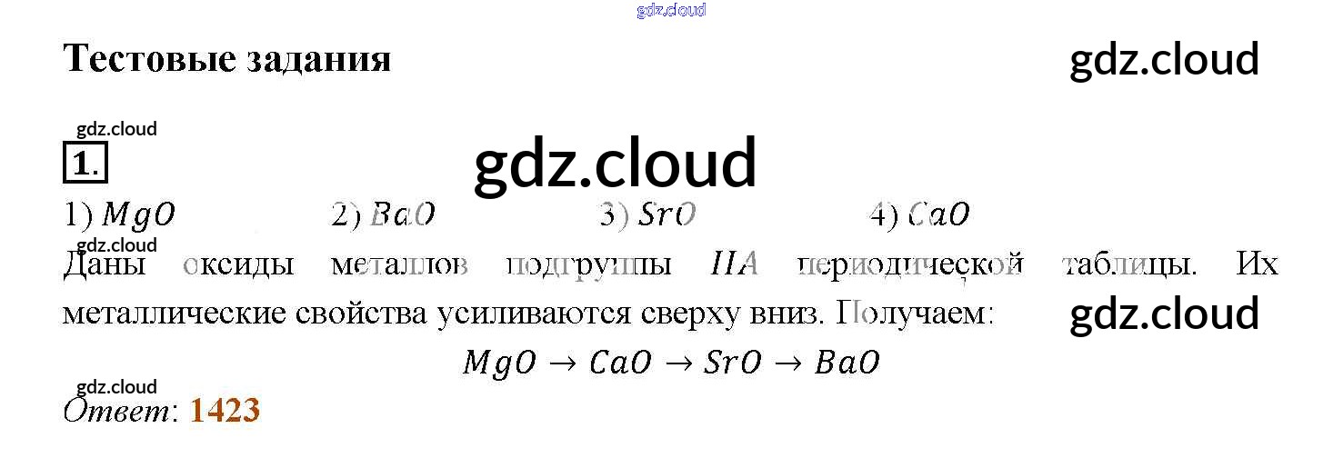 Ответ на задание тестовое задание Учебник Химия за 9 (девятый) класс Рудзитис, Фельдман УМК 2016