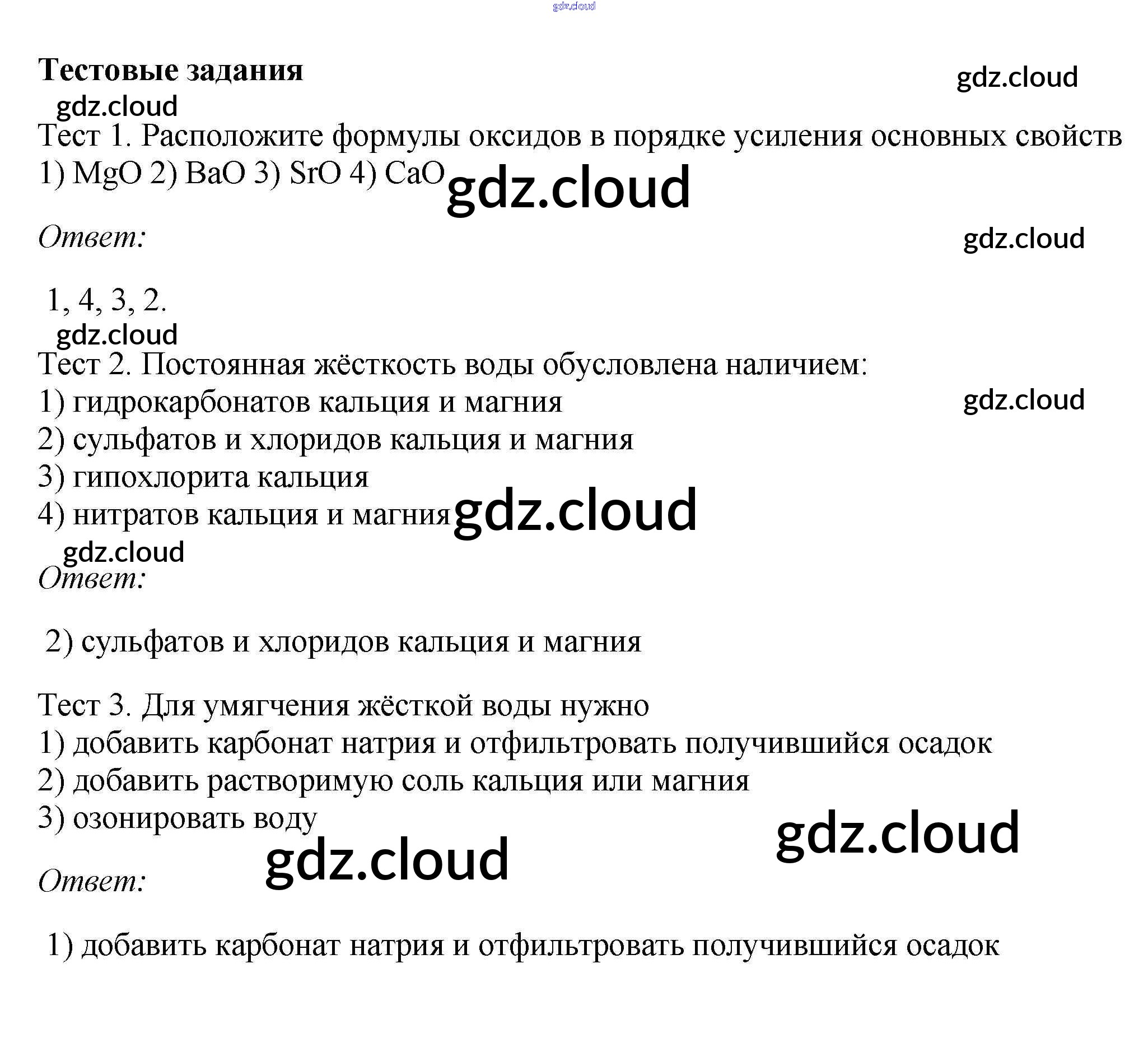 новое издание / § 45. Важнейшие соединения кальция. Жесткость воды / тестовое задание
