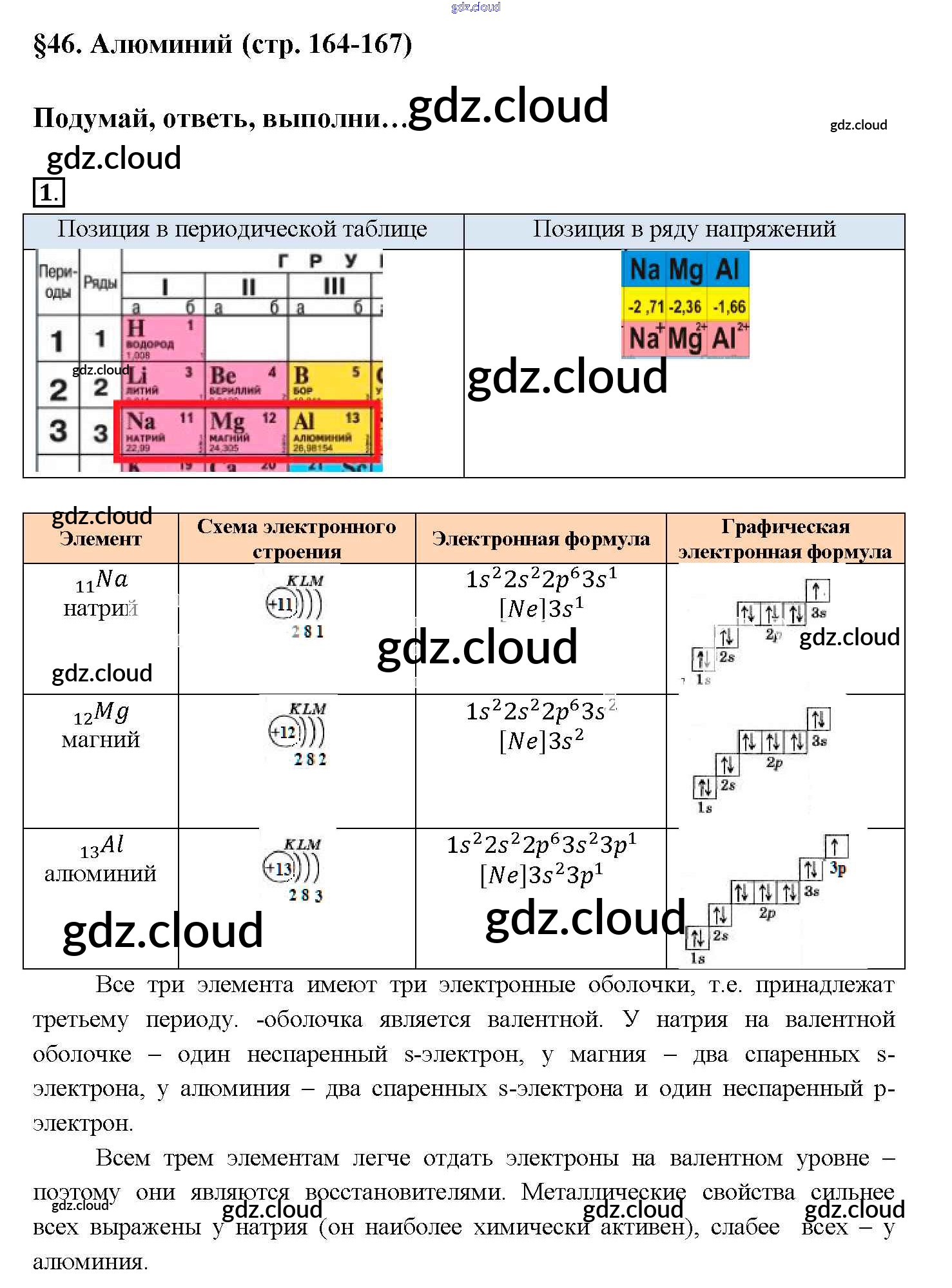 § 46. Алюминий Ответы к новому изданию по Химии 9 класс Учебник Рудзитис УМК Просвещение