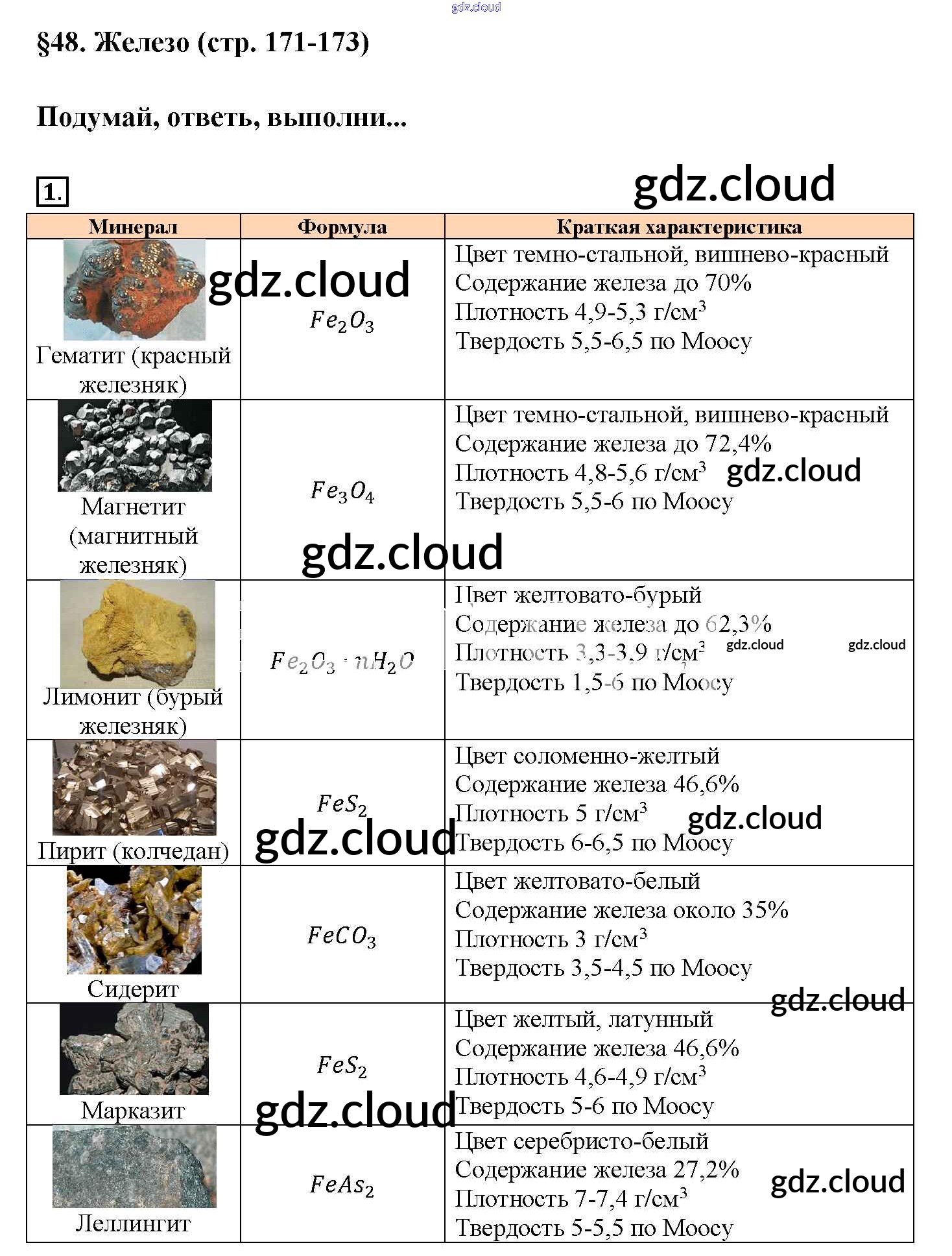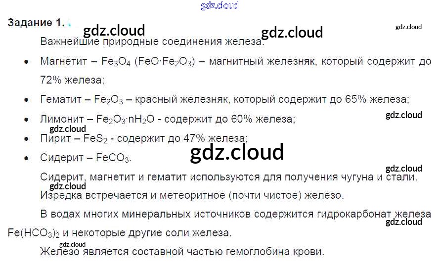 § 48. Железо Ответы к новому изданию по Химии 9 класс Учебник Рудзитис УМК Просвещение