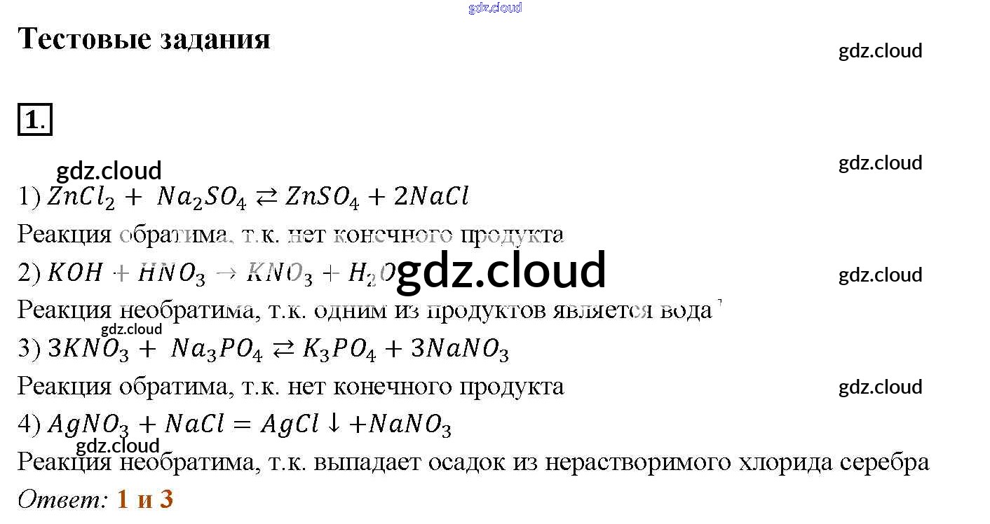 Ответ на задание тестовое задание Учебник Химия за 9 (девятый) класс Рудзитис, Фельдман УМК 2016