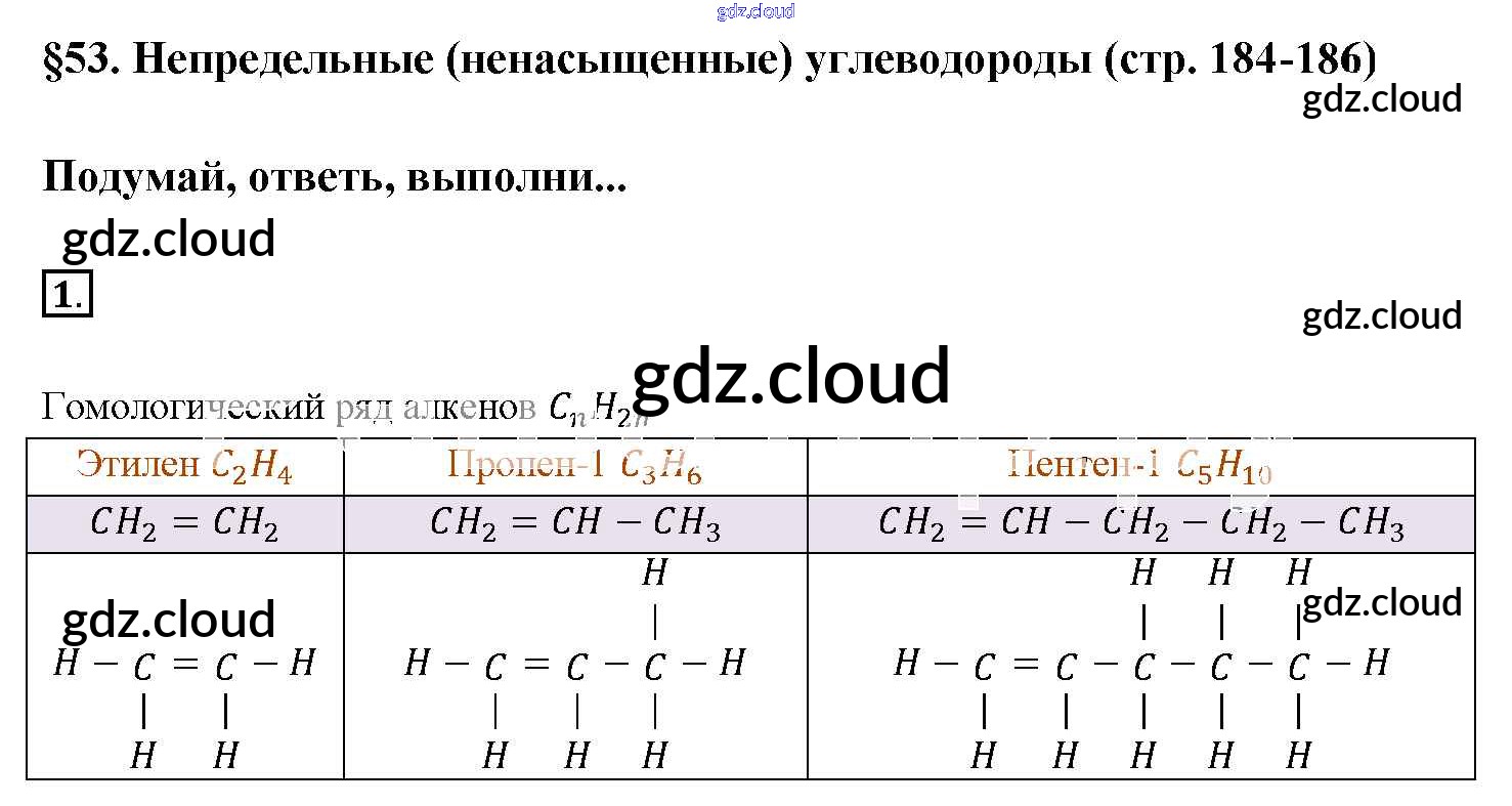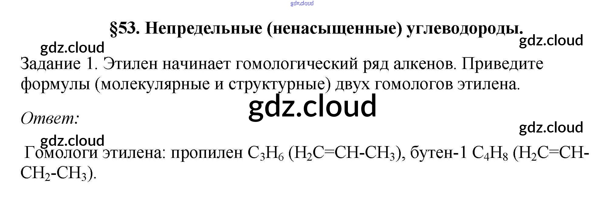 § 53. Непредельные углеводороды Ответы к новому изданию по Химии 9 класс Учебник Рудзитис УМК Просвещение
