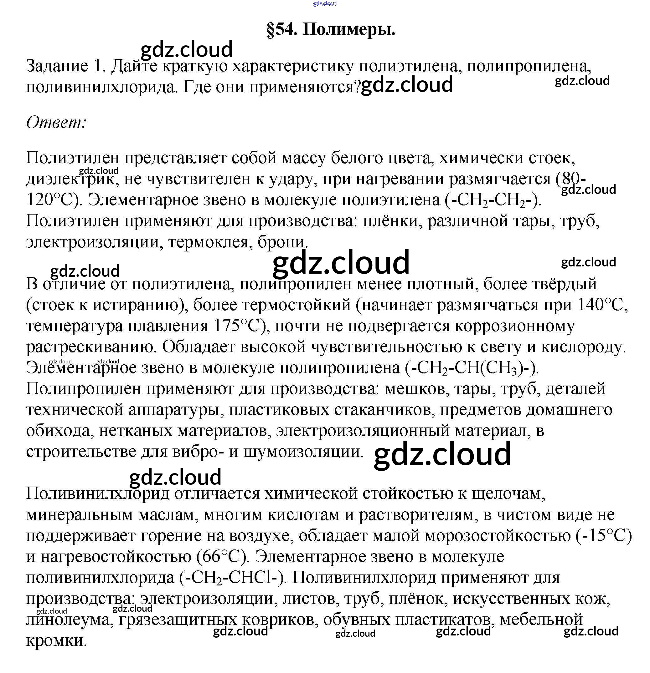 § 54. Полимеры Ответы к новому изданию по Химии 9 класс Учебник Рудзитис УМК Просвещение