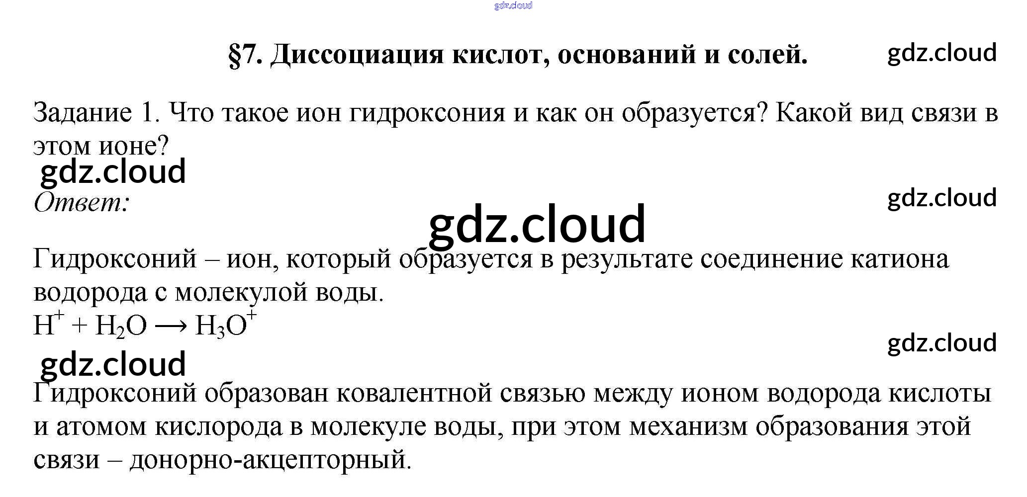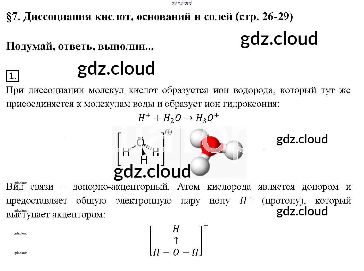 § 7. Диссоциация кислот, оснований и солей Ответы к новому изданию по Химии 9 класс Учебник Рудзитис УМК Просвещение