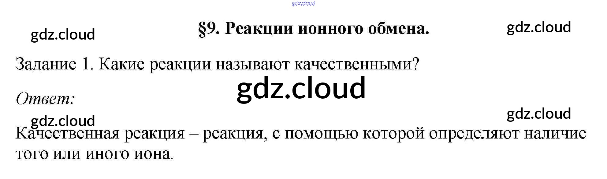§ 9. Реакции ионного обмена Ответы к новому изданию по Химии 9 класс Учебник Рудзитис УМК Просвещение