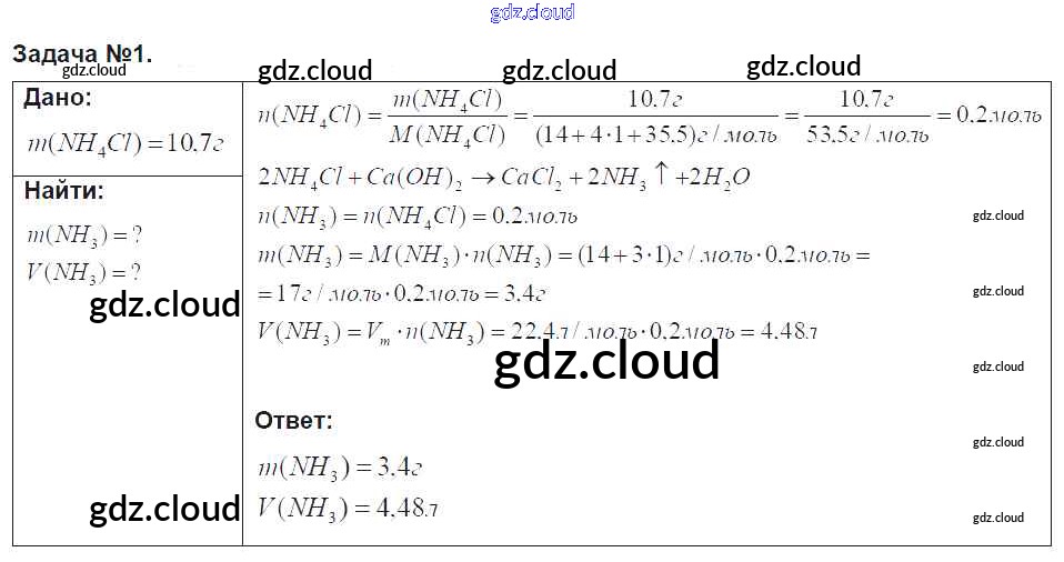 Ответ на задание задача №1 Учебник Химия за 9 (девятый) класс Рудзитис, Фельдман УМК 2016