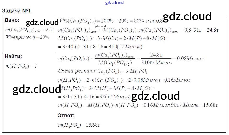 Ответ на задание задача №1 Учебник Химия за 9 (девятый) класс Рудзитис, Фельдман УМК 2016