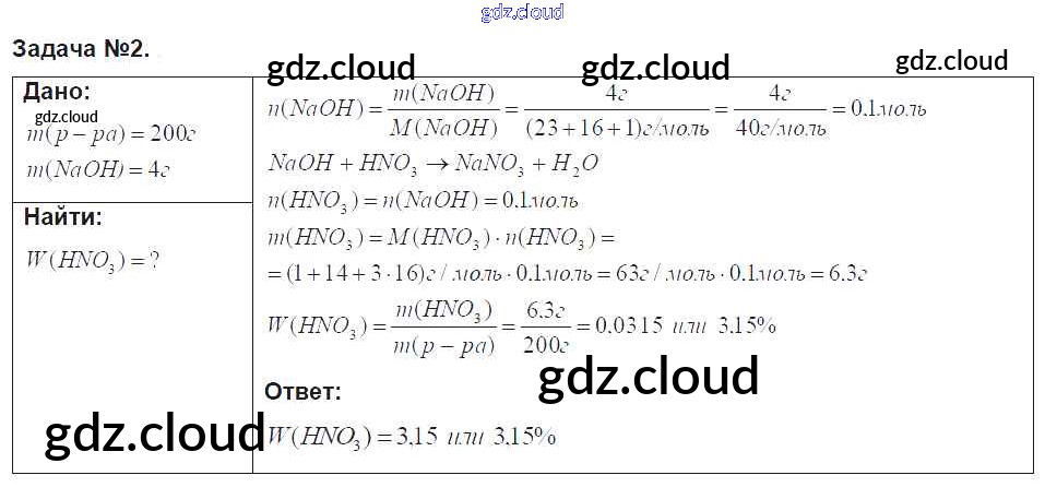 Ответ на задание задача №2 Учебник Химия за 9 (девятый) класс Рудзитис, Фельдман УМК 2016