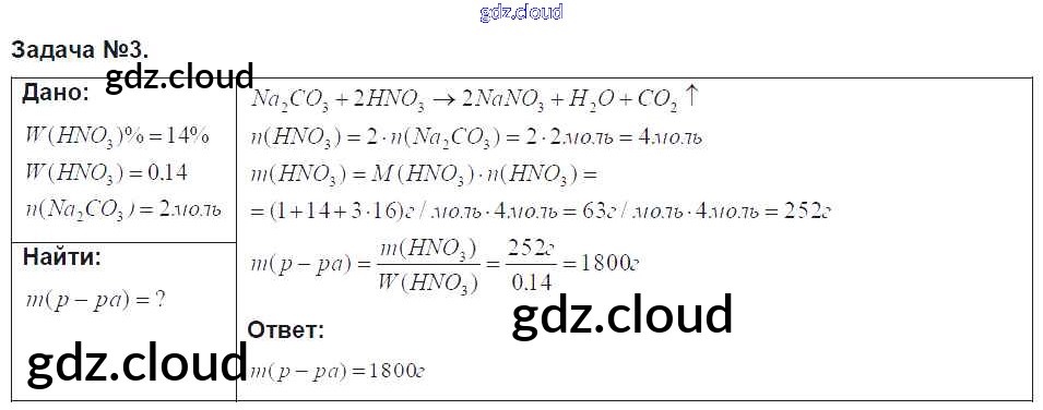 Ответ на задание задача №3 Учебник Химия за 9 (девятый) класс Рудзитис, Фельдман УМК 2016
