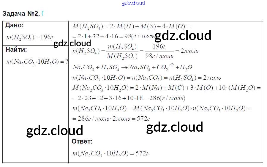 Ответ на задание задача №2 Учебник Химия за 9 (девятый) класс Рудзитис, Фельдман УМК 2016