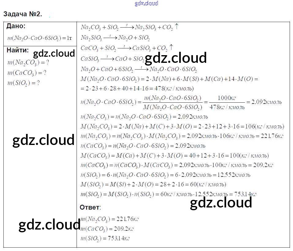Ответ на задание задача №2 Учебник Химия за 9 (девятый) класс Рудзитис, Фельдман УМК 2016