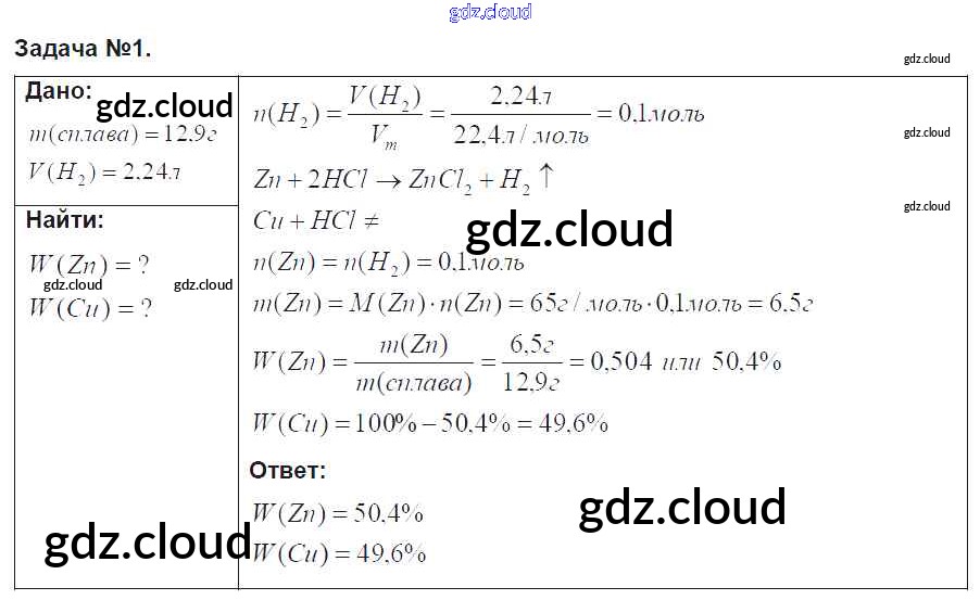 Ответ на задание задача №1 Учебник Химия за 9 (девятый) класс Рудзитис, Фельдман УМК 2016