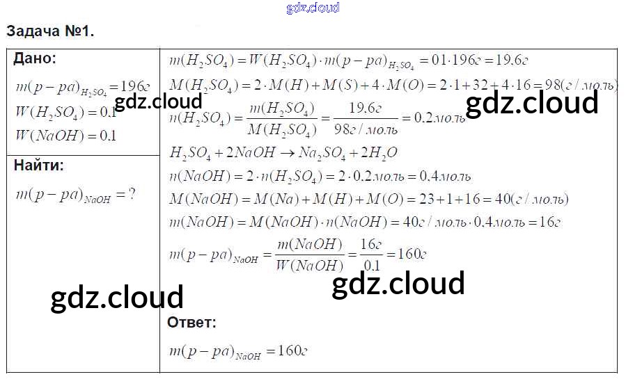 Ответ на задание задача №1 Учебник Химия за 9 (девятый) класс Рудзитис, Фельдман УМК 2016