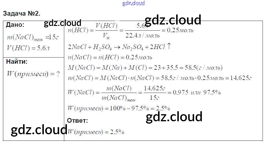 Ответ на задание задача №2 Учебник Химия за 9 (девятый) класс Рудзитис, Фельдман УМК 2016