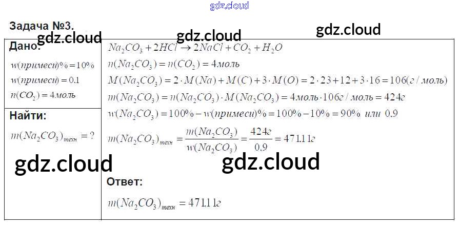 Ответ на задание задача №3 Учебник Химия за 9 (девятый) класс Рудзитис, Фельдман УМК 2016