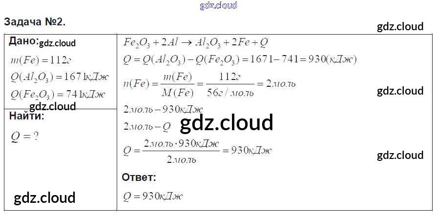 Ответ на задание задача №2 Учебник Химия за 9 (девятый) класс Рудзитис, Фельдман УМК 2016